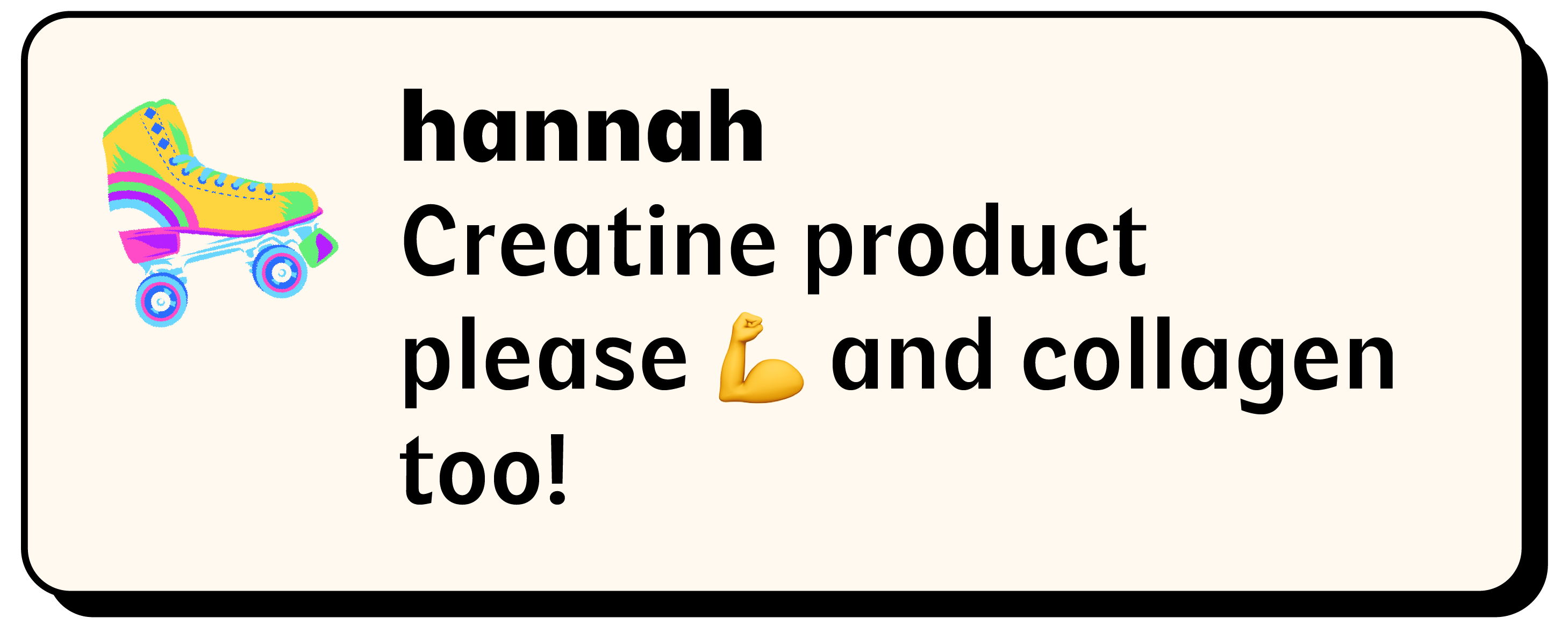 • Creatine supports cellular energy and everyday strength. Collagen supports connective tissue, skin and structural integrity. Together, they cover both performance and maintenance so your body feels more supported overall.