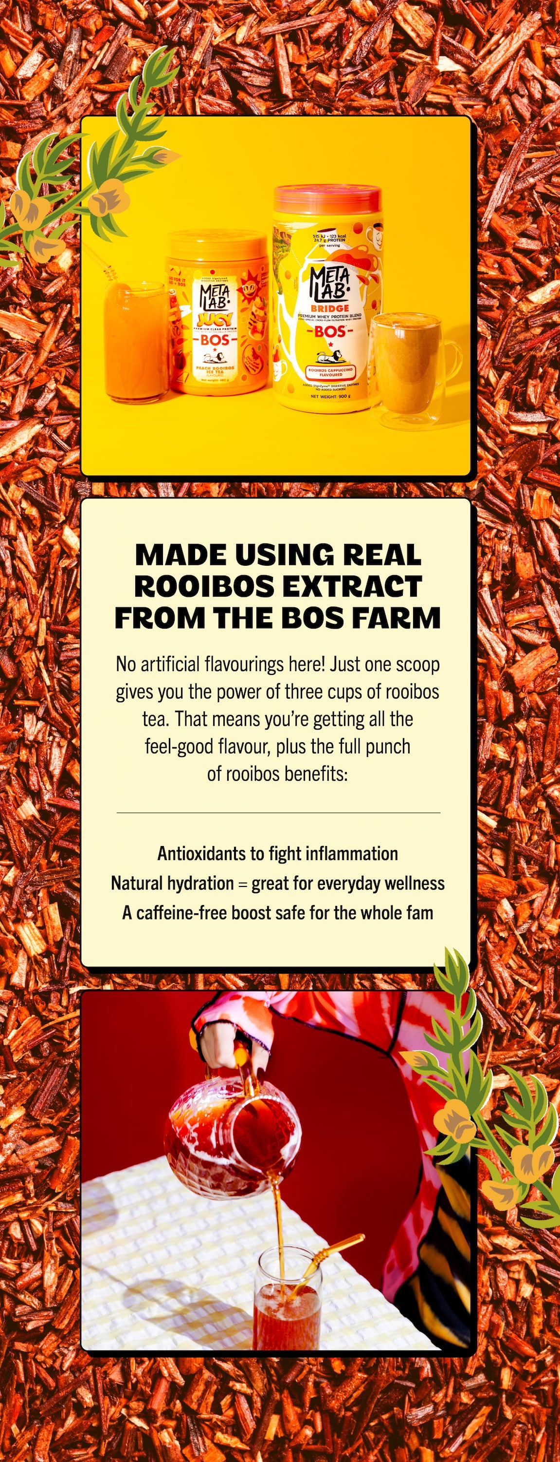 Both formulas use real Rooibos extract sourced directly from the BOS farm, giving them a unique South African flavour and natural antioxidant benefits.