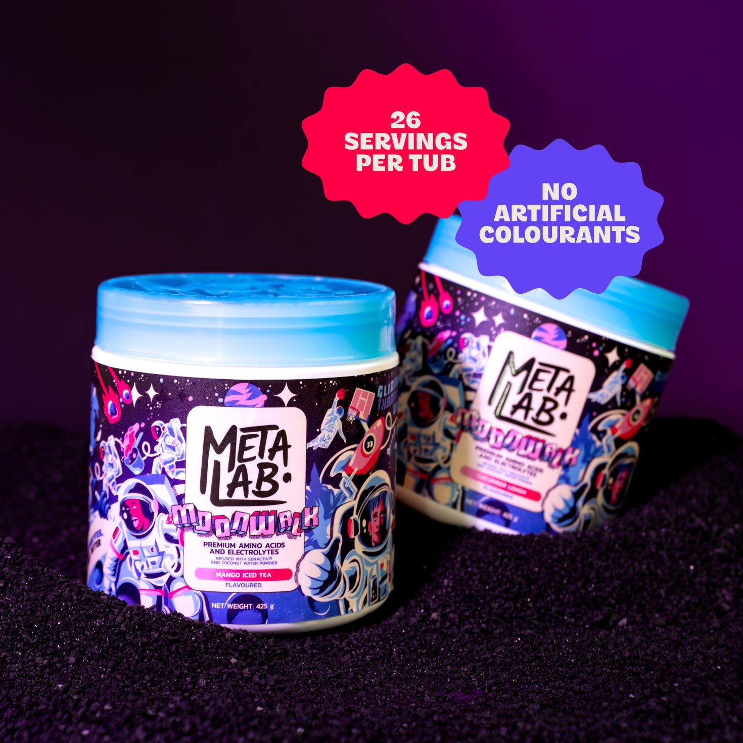 Moonwalk has had a full refresh, including a new overall package design, a new label look, and a different colour lid. The formula has also been updated with added electrolytes.